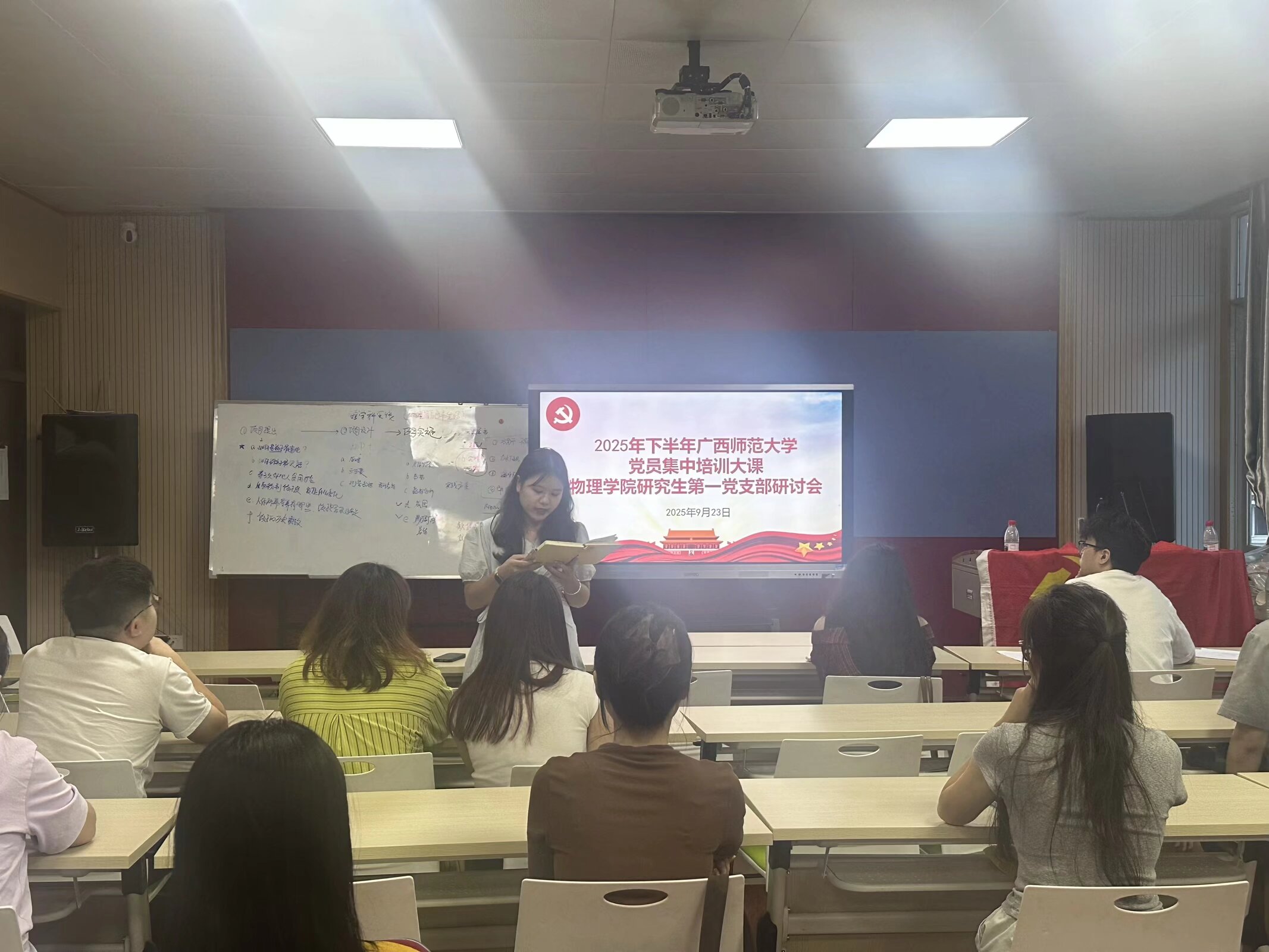 党建工作9月24日,在2025年党员基本培训下半年第一次集中大课培训课后,物理科学与技术学院研究生第一党支部开展党员学习交流会,聚焦党员理论学习与思想交流,旨在强化党性教育,提升研究生党员的政治素养与责任意识。