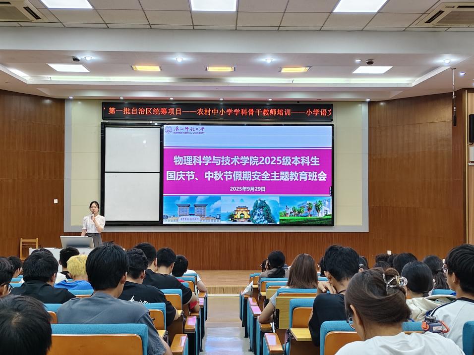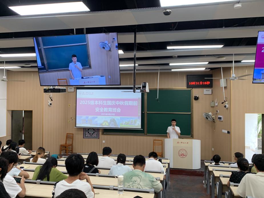 学生活动为筑牢学生假期安全防线,保障学生度过平安祥和的双节假期,9月29日,物理科学与技术学院召开2025级本科生国庆、中秋假前安全教育主题班会。会议由辅导员主持,2025级全体本科生参加。