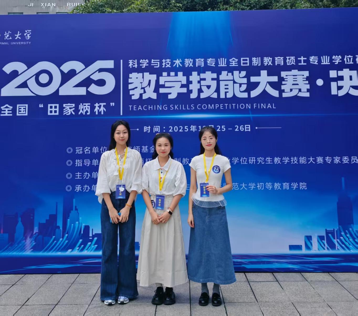 2025年10月25-26日,全国“田家炳杯”全日制教育硕士(科学与技术教育专业)教学技能大赛决赛在重庆师范大学举行。该赛事是国内该领域层次最高、规模最大的竞赛之一,吸引全国36所高校141名选手参赛。物理科学与技术学院2024级研究生陈倩芳、黄超、林诗彤在决赛中凭借优异表现,荣获三等奖两项、优秀奖一项。