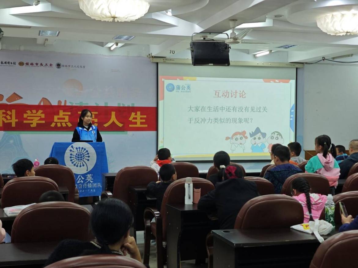学生活动211月2日上午,物理科学与技术学院蒲公英科技教育传播团队(以下简称“蒲公英团队”)前往桂林榕湖图书馆,组织开展“空气动力陀螺”主题科普实践活动。