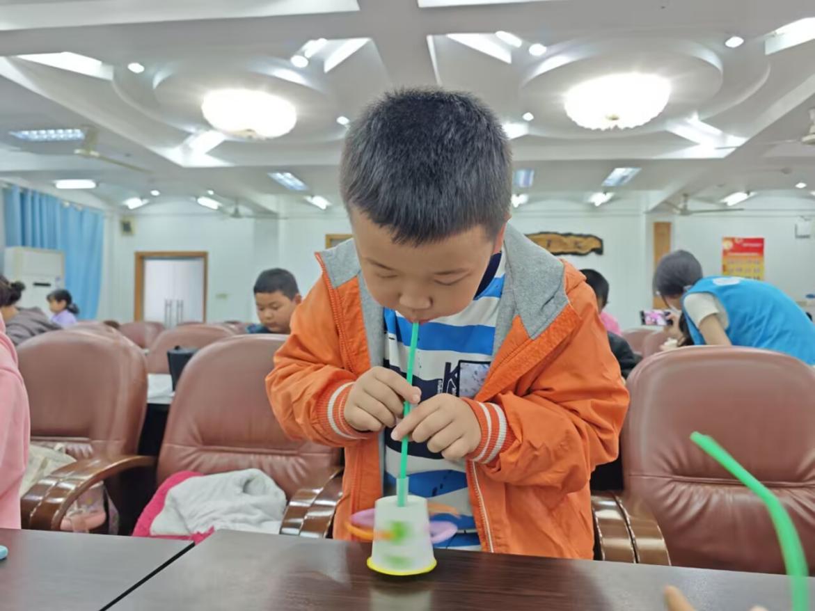 活动伊始,科普老师系统阐释了反冲力与相互作用力的基本原理,并以火箭发射、水上飞人等现实案例辅助讲解,帮助参与者建立理论联系实际的认知框架。在实践环节,小朋友们在团队成员指导下,利用纸杯、吸管、牙签等简易材料组装空气动力陀螺。参与者通过调整气流大小、吸管角度等变量,观察对陀螺旋转效果的影响,深入理解物理原理在实践中的应用。
