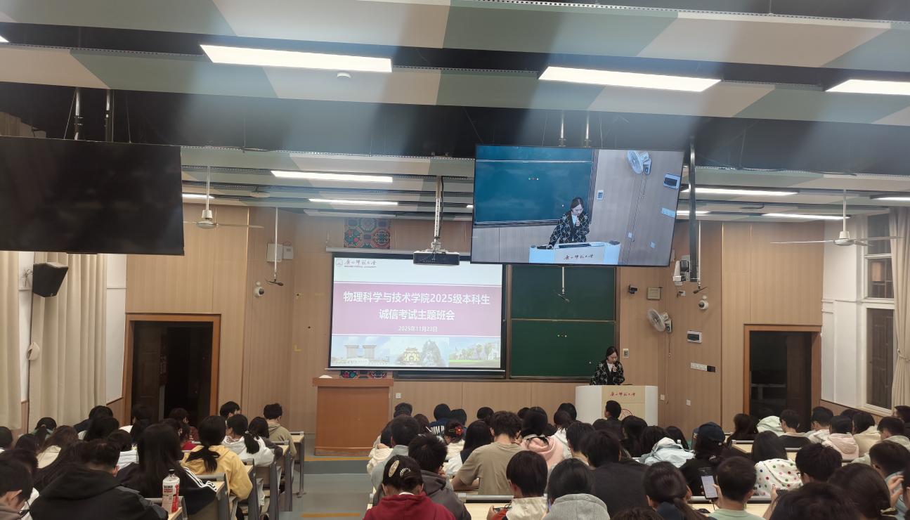 学生活动1为严肃考风考纪,筑牢新生诚信根基,营造公平、公正、清正的考试环境,2025年11月23日,物理科学与技术学院召开2025级新生诚信考试主题班会。本次班会由辅导员老师主讲,全体新生共同参与。
