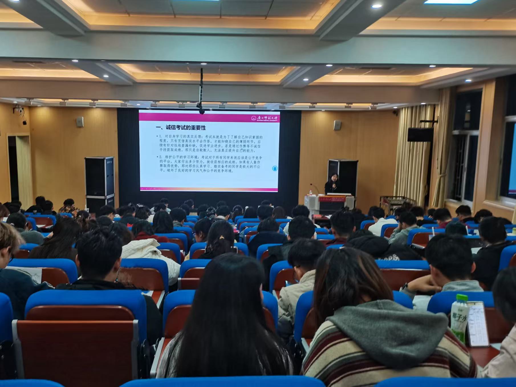 会议尾声,现场发起诚信考试倡议,全体学生在签订《诚信考试承诺书》,郑重承诺遵守考试纪律、杜绝学术不端,以实际行动维护公平公正的考核环境。