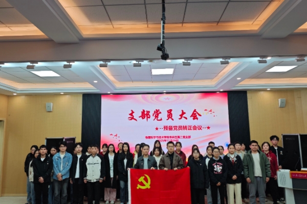 党建工作1为进一步加强党员队伍建设,2025年11月26日下午,物理科学与技术学院本科生第二党支部于物理实验楼阶梯教室召开支部党员大会,会议内容为审议预备党员在预备期间的表现,讨论并表决其转正申请。支部全体党员参加会议。