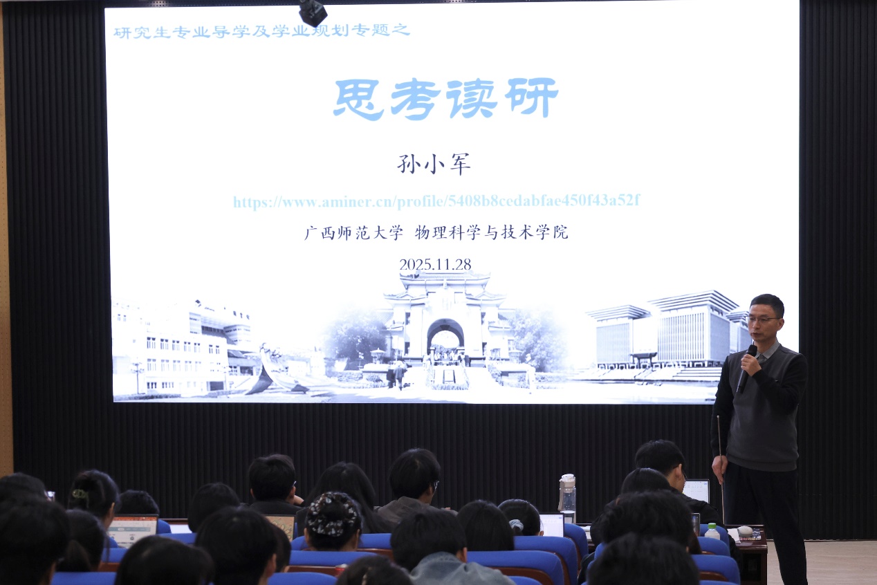 学生活动为帮助研究生深入思考读研意义、明确学业目标、提升科研素养,2025年11月28日晚,物理科学与技术学院在实验楼阶梯教室举办第一百六十六期“望道微课”理论宣讲活动。本次活动以“思考读研”为主题,由学院孙小军教授主讲,吸引了众多研究生参与。