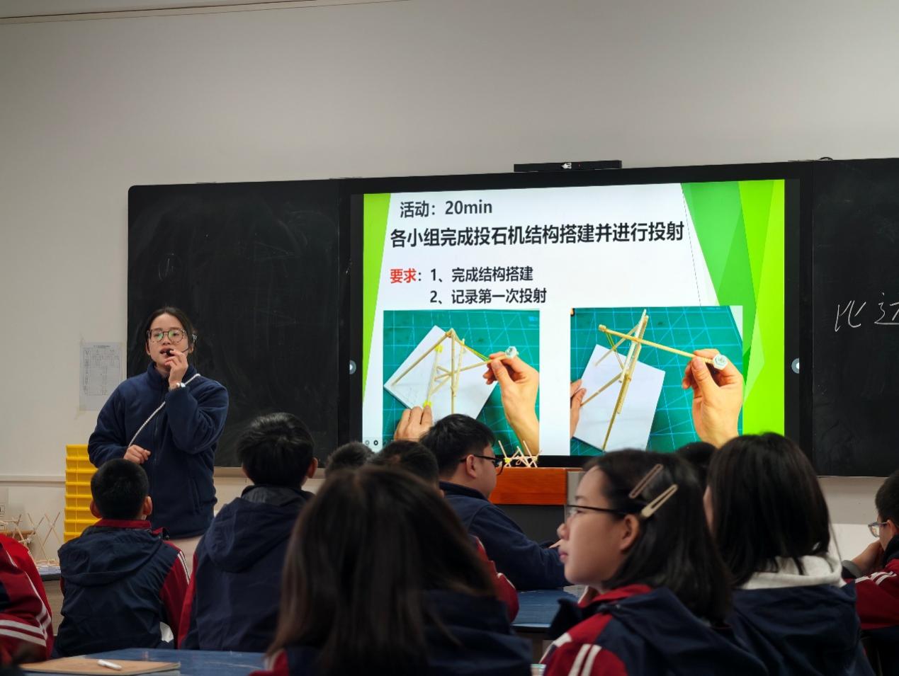 抵达尚贤学校后,杨超芳老师以《穿越古代战场的投石机》为题,从上节课学生制作抛石机的问题与创新点切入,引导学生探索投石机构造与工作机制。随后,杨老师分享班级管理、学生沟通等实践经验,干货满满的讲解为同学们未来开展班主任工作提供实用参考。