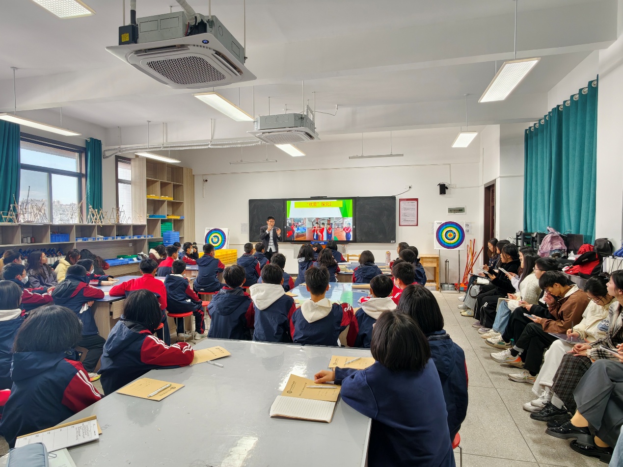 紧接着,周晓庆老师带来《“气弓箭探究”谁是小小神射手》一课。课堂上,周老师引导学生探究箭体创新点、完善气弓箭,通过观察、记录、分析实验,探索箭体与射程、上靶率的关系,充分调动学生主动性与探究欲,让同学们深切感受“做中学、玩中学”的教学魅力。
