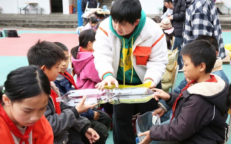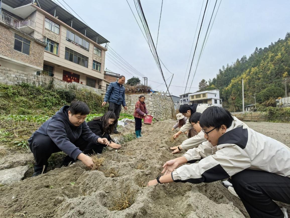 随后,学院师生分别在坪水底村完小开展科普教育活动、前往劳动实践基地参与中药材白芨的种植。科普教育过程中,通过制作与发射“水火箭”,将深奥的物理原理转化为直观体验,极大地激发了乡村孩子们对科学的兴趣与热情,在其心中播下了探索与创新的种子,为乡村教育注入了鲜活的知识力量。中药材白芨种植过程中,师生们深入田间地头,学习种植技术,真切体会劳动的魅力与价值。期间,学院还特邀驻村书记在劳动现场开设“望道微课”,将理论宣讲与生产实践场景深度融合,让师生在服务中学习、在劳动中感悟,强化了学院师生知农爱农、强农兴农的时代担当。