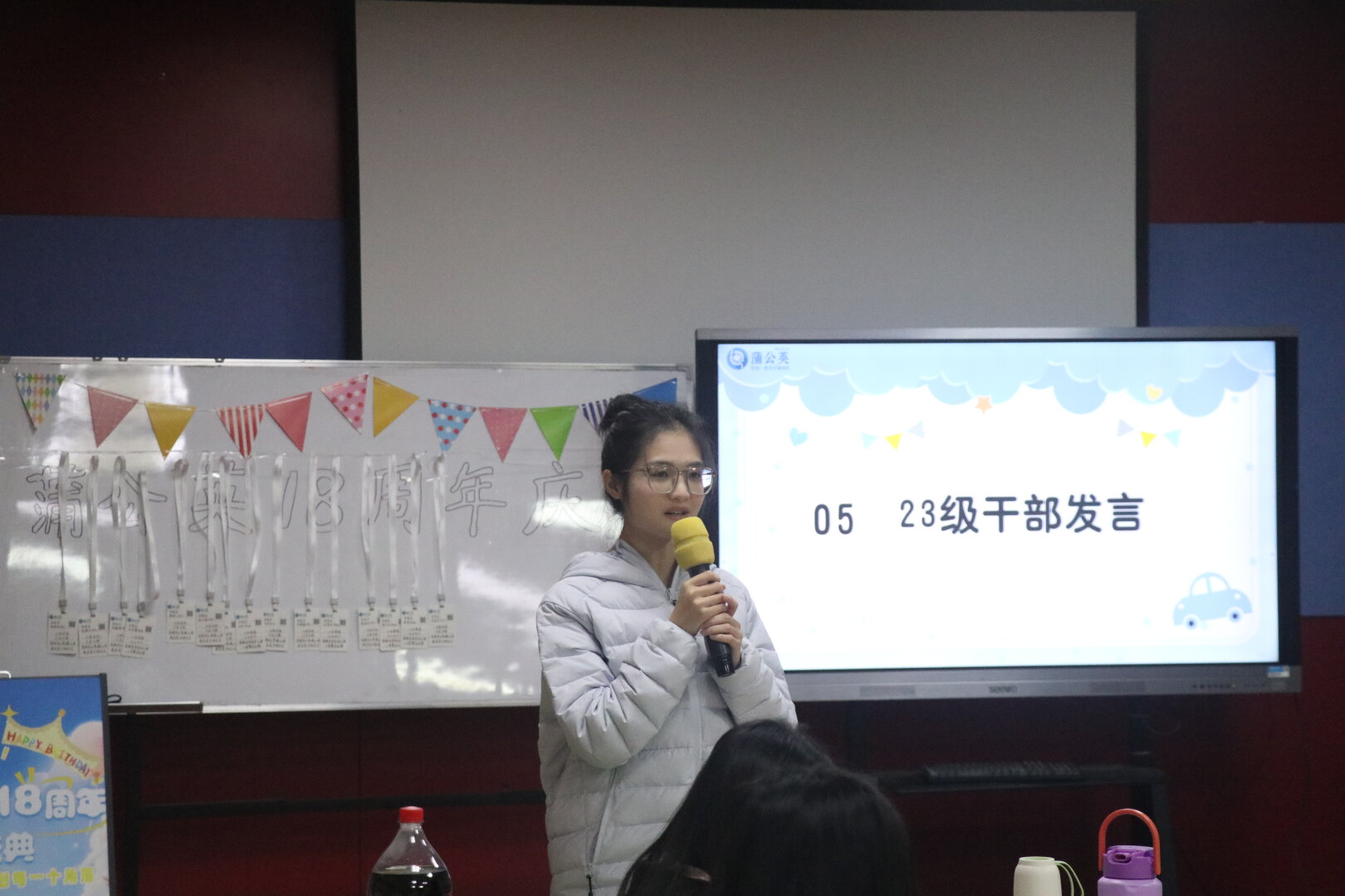 经验交流结束后,2024级成员为指导老师及卸任队员颁发聘书与纪念奖品。接着,全体成员共庆团队十八周年,切开定制蛋糕,现场氛围热烈温馨。最后,全体成员欢聚一堂,通过游戏、合唱等形式互动,现场欢声笑语不断。