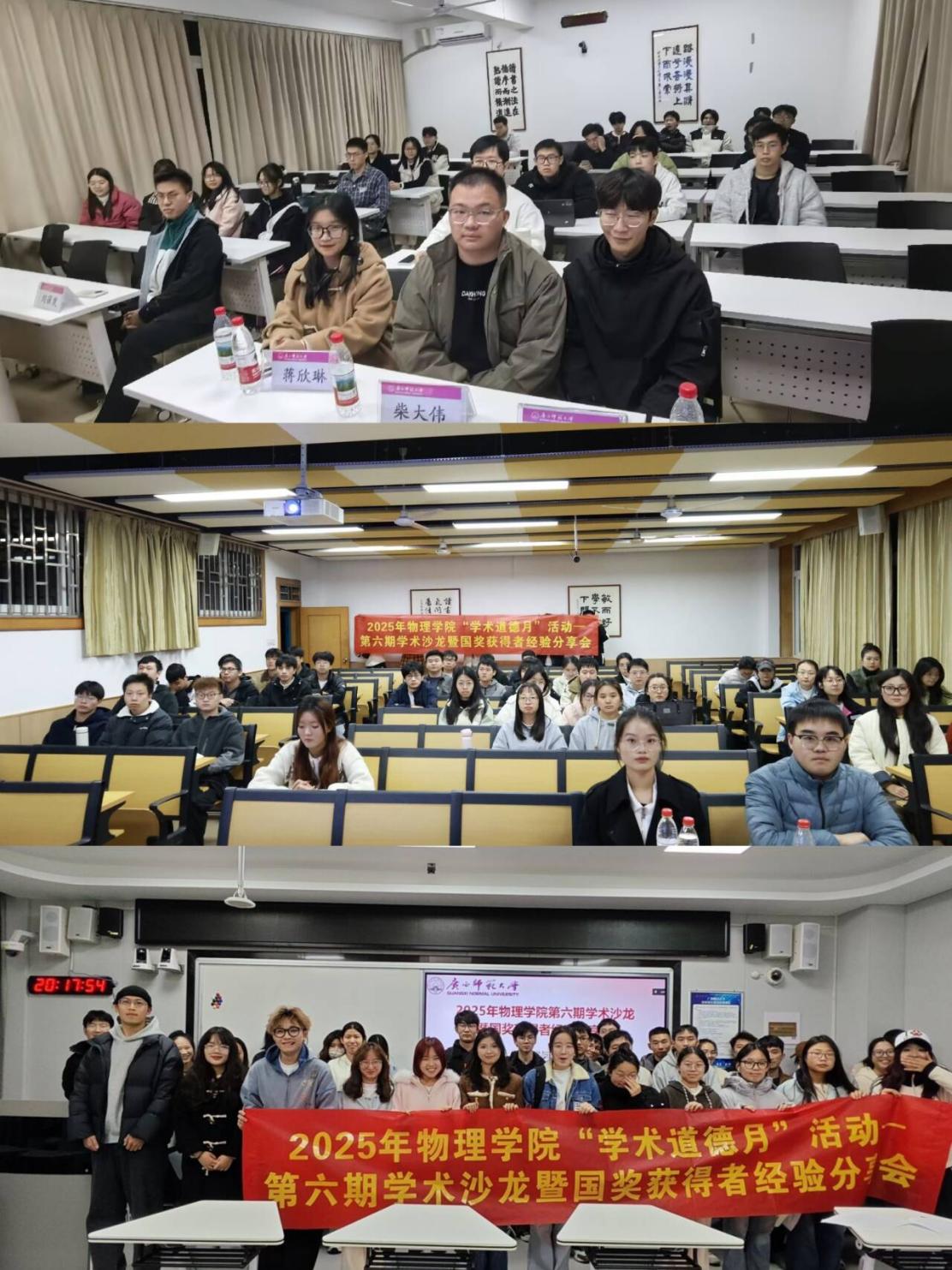 学生活动为充分发挥优秀学生的榜样引领作用,营造积极进取的学术氛围,12月14日,物理科学与技术学院举办第六期学术沙龙暨国奖获得者经验分享活动,活动分专业方向、分三个场次在理科综合楼开展,2025级研究生共同参与。