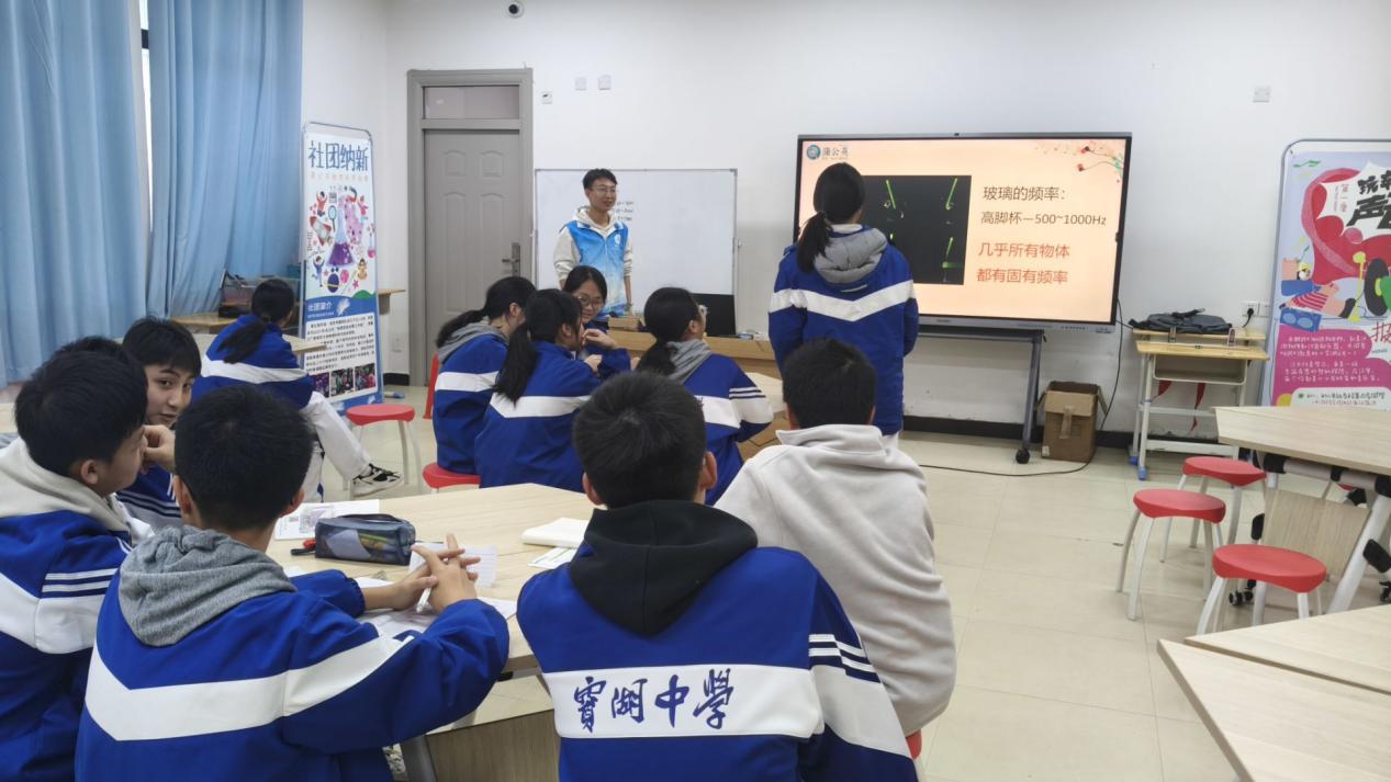 学生活动23 月 29 日下午,物理科学与技术学院蒲公英科技・教育传播团队赴宝湖中学科技楼 401、402 教室,开展“玩转声音”系列科普课程第三讲——《频率的奥秘》,为初一、初二学生带来一场生动的声音科学探索之旅。