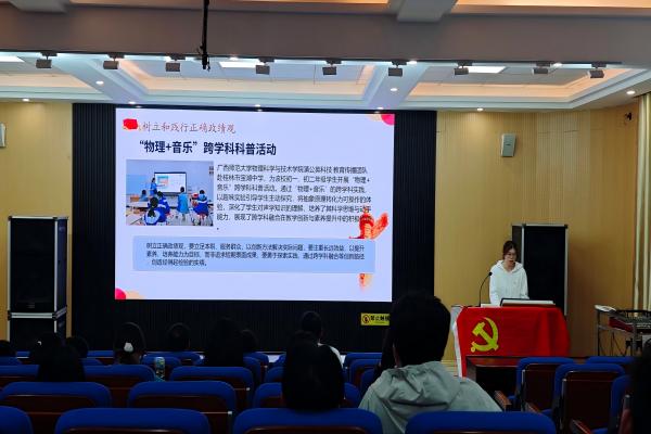 此次会议系统学习了正确政绩观的深刻内涵,结合学院实践特色,融入广西师范大学驻村干部投身乡村振兴、学院蒲公英团队开展“物理+音乐”跨学科科普服务等鲜活案例,引导党员把正确政绩观落到实处:勤学实干、服务群众,注重长远效益,以实干与创新去创造实实在在的成果。
