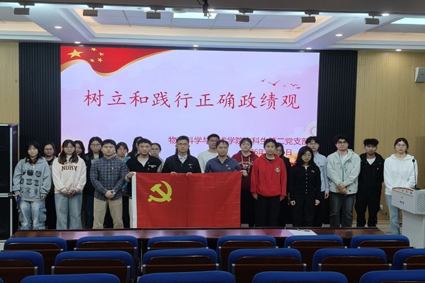 党建工作33月31日,物理科学与技术学院本科生第二党支部于物理实验楼阶梯教室开展“树立和践行正确政绩观学习教育”主题党日活动,全体党员参会。活动紧扣“政绩为谁而树、树什么样的政绩、靠什么树政绩”核心问题,进一步筑牢党员思想根基、锤炼党性,有效提升支部的凝聚力和战斗力。