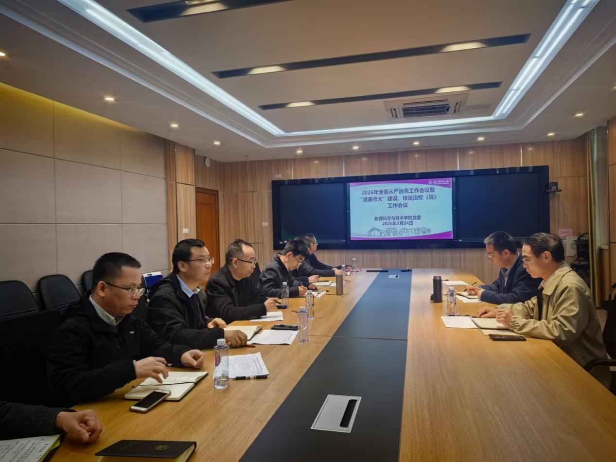 精彩导览13 月 24 日,物理科学与技术学院召开2026年度全面从严治党暨 “清廉师大” 建设工作会议,学院领导班子成员、院长助理、院办主任、各党支部书记参加会议。