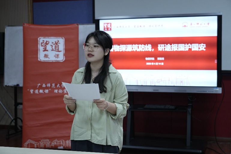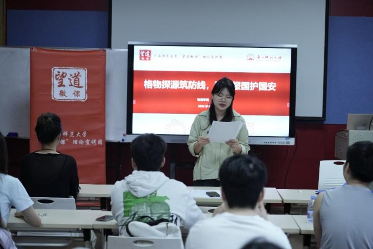 学生活动22026年4月14日下午,物理科学与技术学院于物理实验楼410开展以“格物探源筑防线,研途报国护国安”为主题的理论宣讲活动,主讲人由研究生辅导员主持,全体研一党支部党员共同参与。