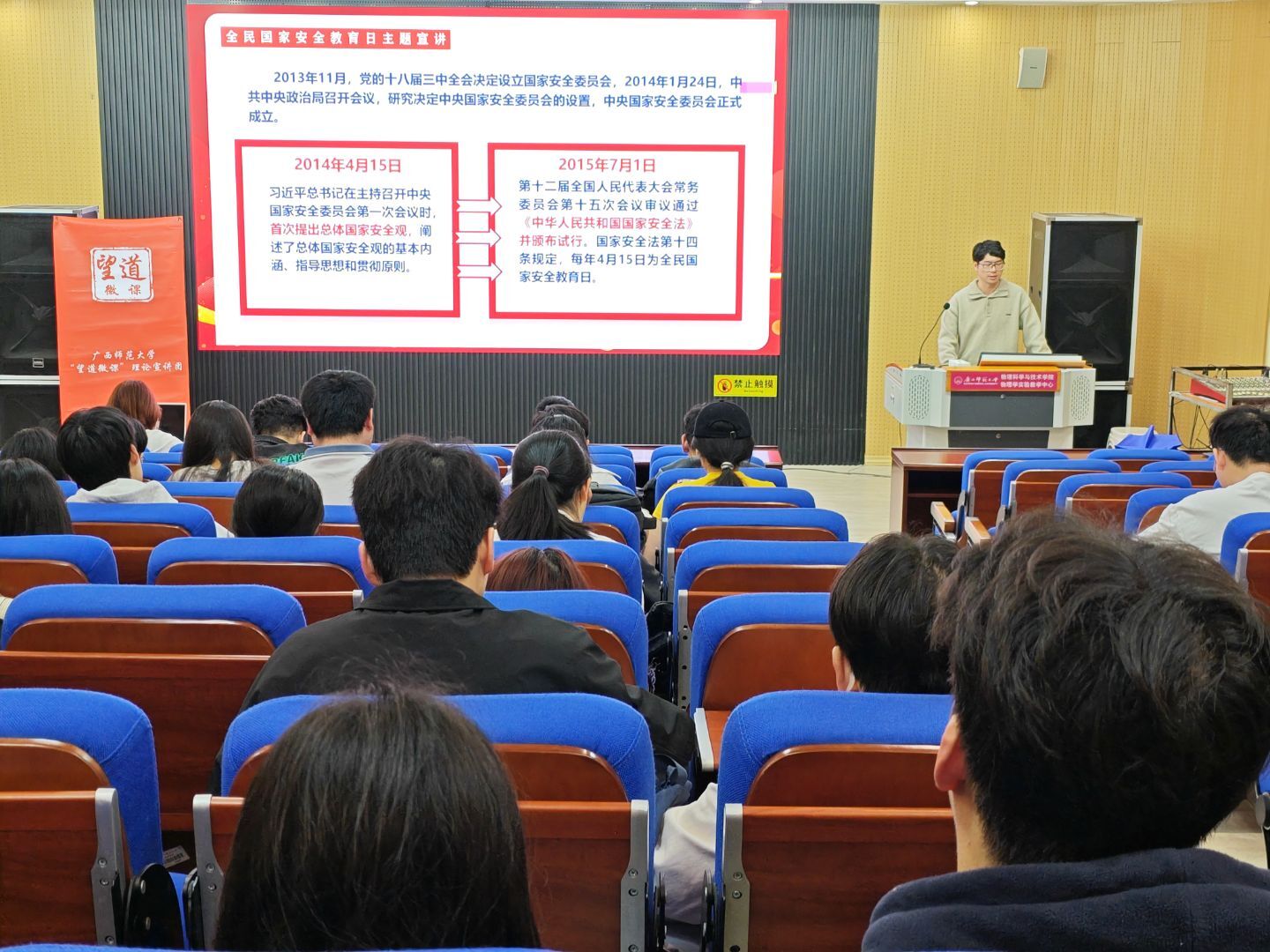 学生活动2为深入贯彻落实总体国家安全观,增强研究生国家安全意识,4月15日,物理科学与技术学院召开研究生主题教育班会,并同步开展全民国家安全教育日专题宣讲,全体研究生参会。